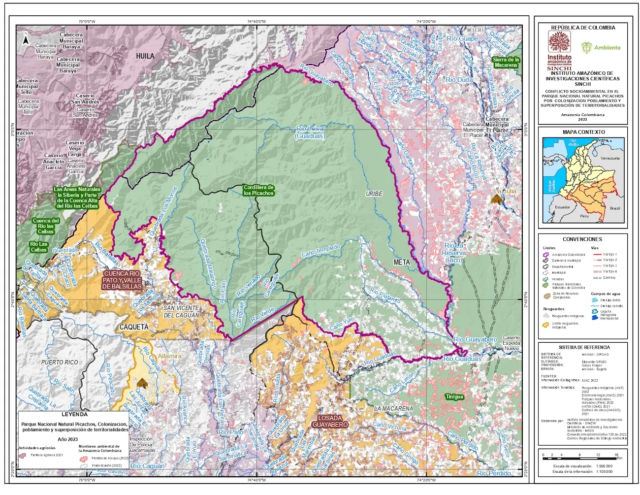 SIAT-AC Instituto Amazónico de Investigaciones Científicas SINCHI (2023). Atlas de conflictos socioambientales de la Amazonia colombiana. Parque Nacional Natural Picachos Colonización, Poblamiento y Superposición de Territorialidades [Página web]. Disponible en: https://siatac.co/tipologia-agropecuarios-y-gestion-forestal/#021