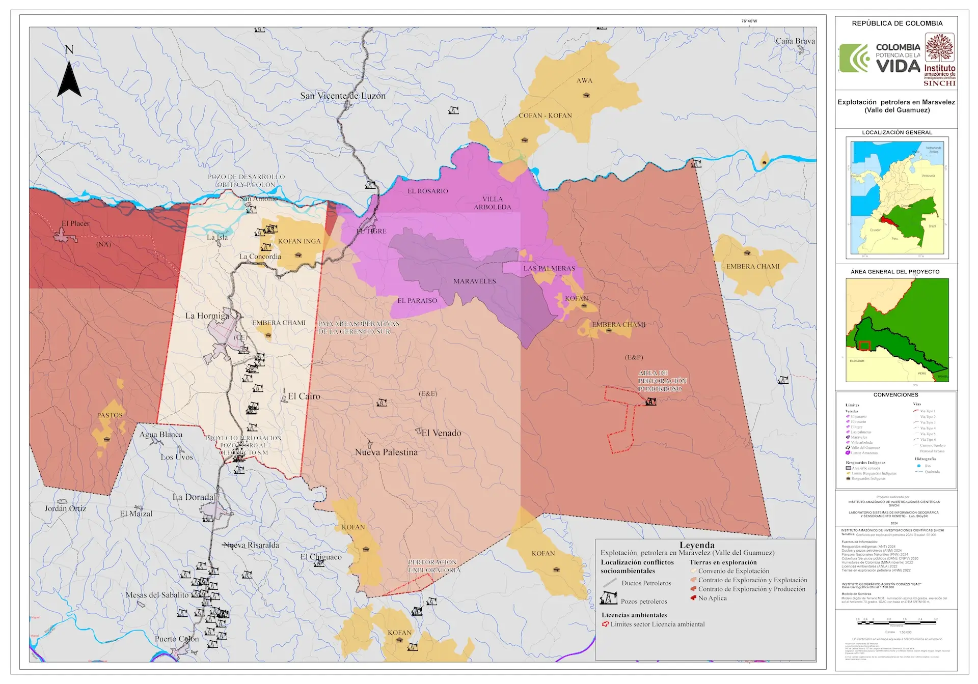 SIAT-AC Instituto Amazónico de Investigaciones Científicas SINCHI (2023). Atlas de conflictos socioambientales de la Amazonia colombiana. Explotación petrolera en Maravelez (Valle del Guamuez) [Página web]. Disponible en: https://siatac.co/tipologia-hidrocarburos/#027